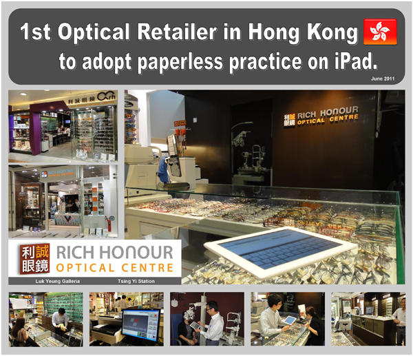 Rich Honour Optical Centre is the first optical retailer in Hong Kong to adopt a full paperless concept in their practice. Visual Optical RMS, with the add-on iPad module increases overall efficiency and enables the optician & optometrist to provide a more personal touch when interacting with their customers.